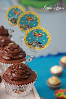 Cupcakes que fiz para o niver dele, e essas plaquinhas como os convites e tags foram feitas por uma pessoa muito especial, que virou uma grande amiga que conheci através da Cake do Cerrado, a Liandra. Ficou tudo lindo, perfeito!!!!